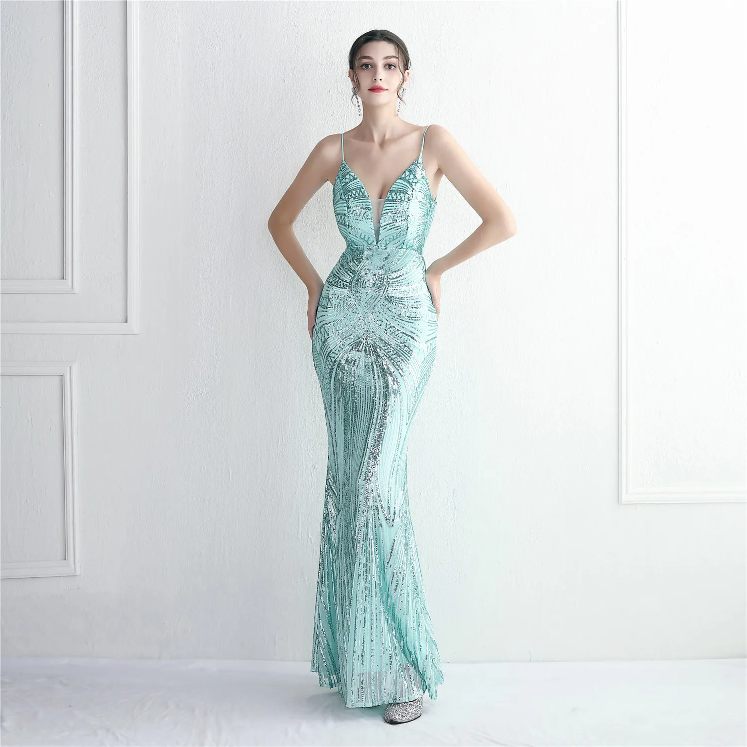 19362# Pearl Subscription Positioning Flower Elegant Women Sequin Long Mermaid Formaldress Evening Dress Women Party Dress