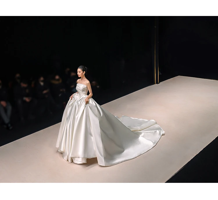 2025 Elegant Sleeveless Satin Ball Gown Wedding Dress Long Train Bridal Wedding Dress