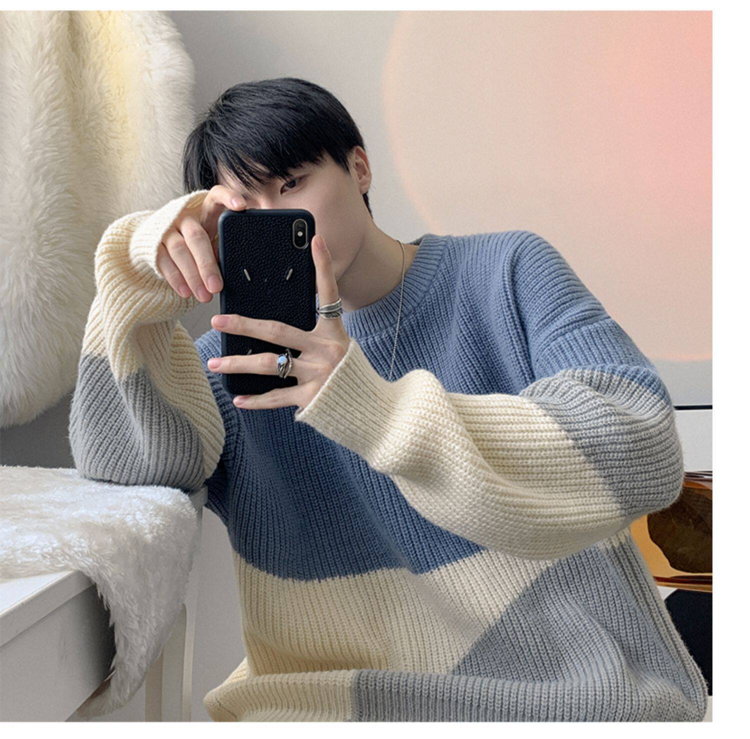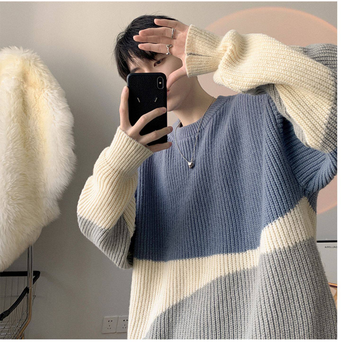 Crewneck Sweater Boys Autumn and Winter oversize Fashion Outer Wear Casual Sweater Thickened Stitching All-match Sweater