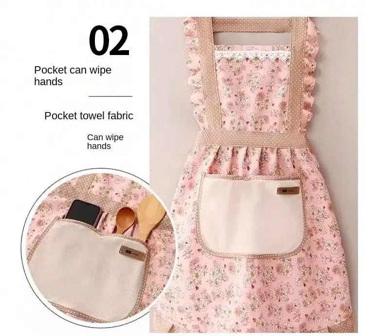 Home & Living, Kitchen & Dining, Kitchen Tools & Gadgets, Canvas Floral Hand Wipe Apron, Kitchen Home Cooking Oil and Stain Resistan