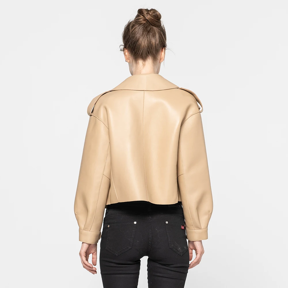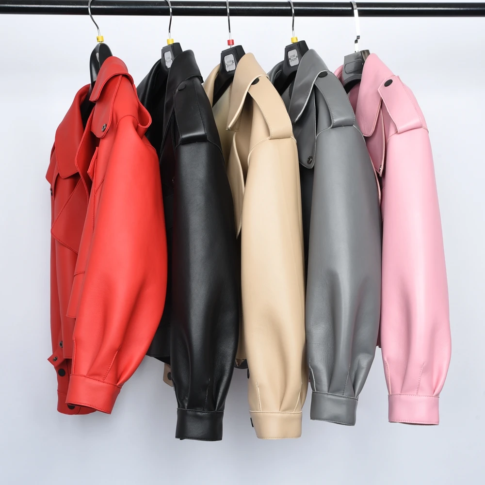 Multi Color Genuine Sheepskin Bomber Leather Jacket Women Motorcycle Leather Jackets