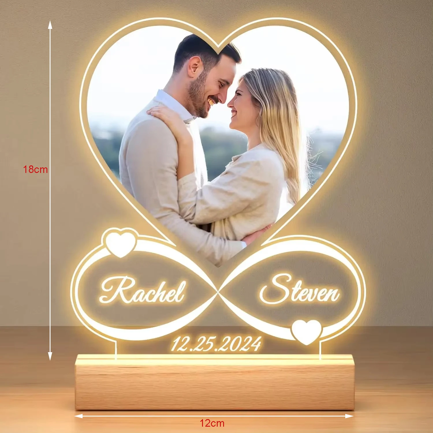 Personalized Love Couple Gifts With 3/7Colors Night Light Base Customized Frame Plaque for Women Men Valentines Anniversary Him Her Boyfriend Girlfriend
