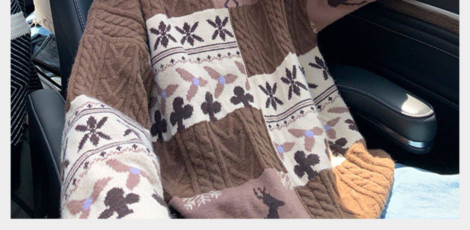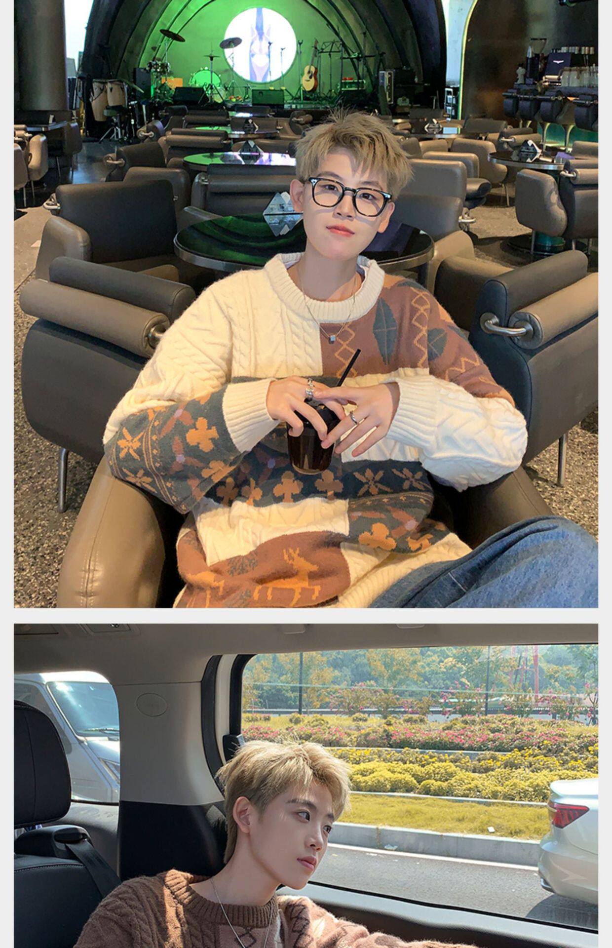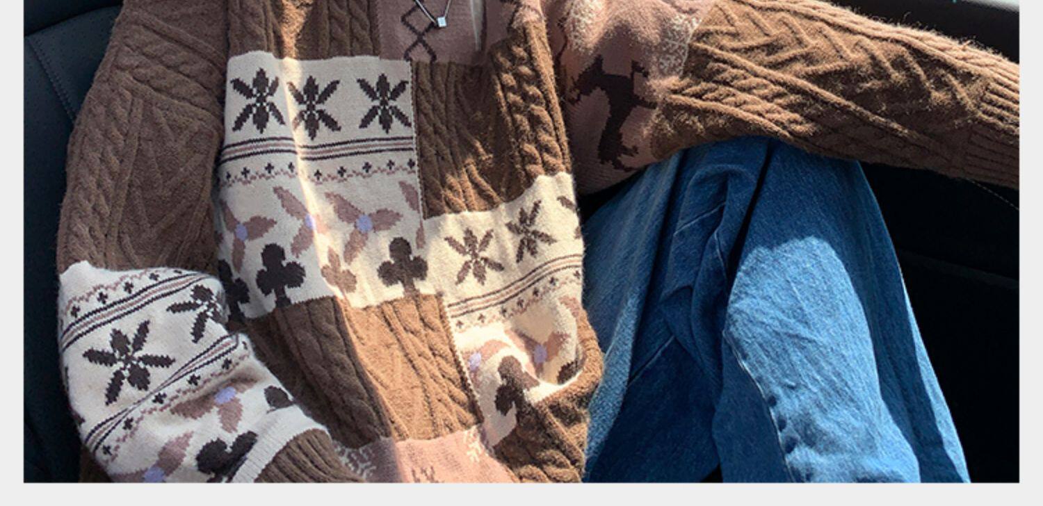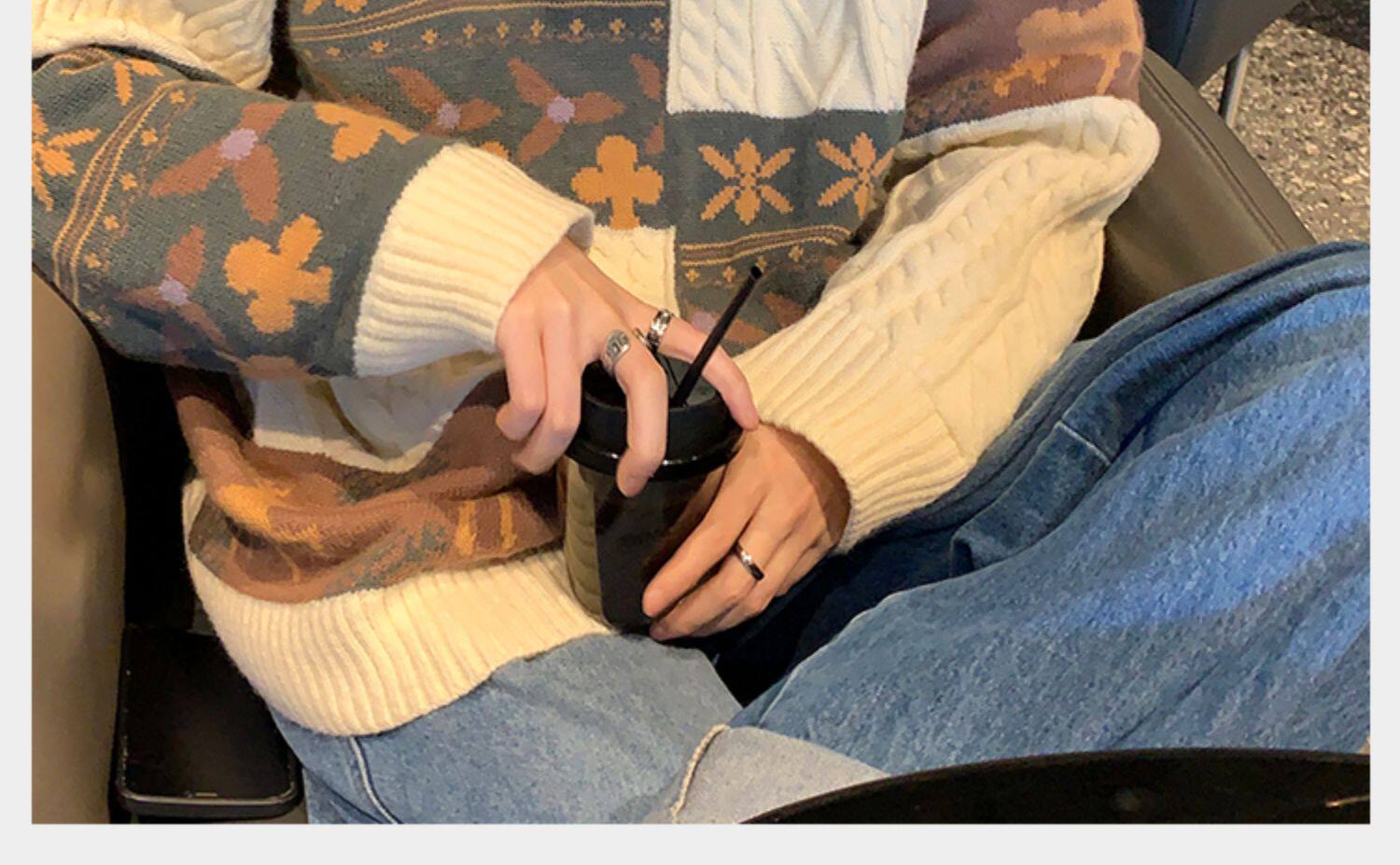 @港仔文艺男 拼接毛衣男冬季加厚潮牌复古秋冬款男生针织衫男款